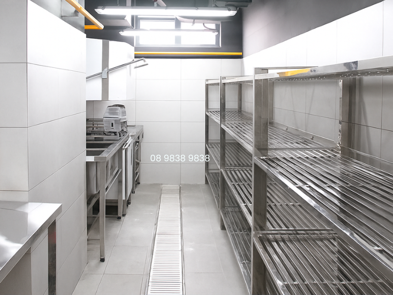 Kệ Inox 304 được sử dụng rộng rãi trong bếp nhà hàng, khách sạn và cơ sở chế biến thực phẩm