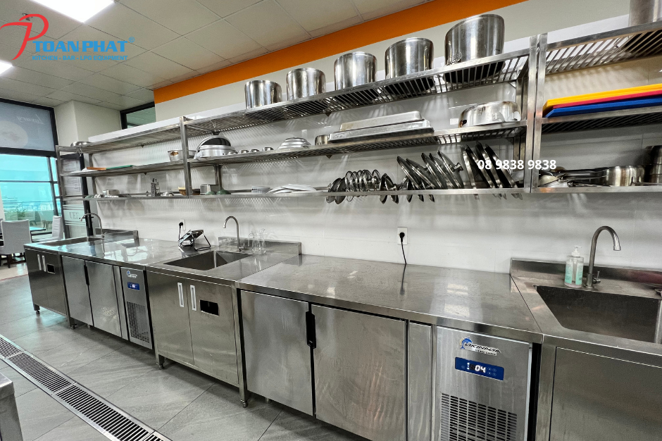 Việc duy trì một không gian bếp công nghiệp gọn gàng, sạch sẽ và an toàn không hề đơn giản, đặc biệt là đối với những bếp ăn có không gian hạn chế, dụng cụ bừa bộn và các thiết bị dễ gỉ sét. Kệ inox là giải pháp lý tưởng giúp khắc phục những khó khăn này. Toàn Phát cam kết cung cấp kệ inox chất lượng cao, bền bỉ và giá cả cạnh tranh, đáp ứng mọi nhu cầu của khách hàng.