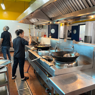 Sau khi thực khách ăn uống xong, xe đẩy sẽ thu hồi bát đĩa chuyển vào khu vực này để làm sạch. Thức ăn thừa sẽ được thu dọn sạch sẽ, gọn gàng, tránh gây mùi khó chịu trong gian bếp.